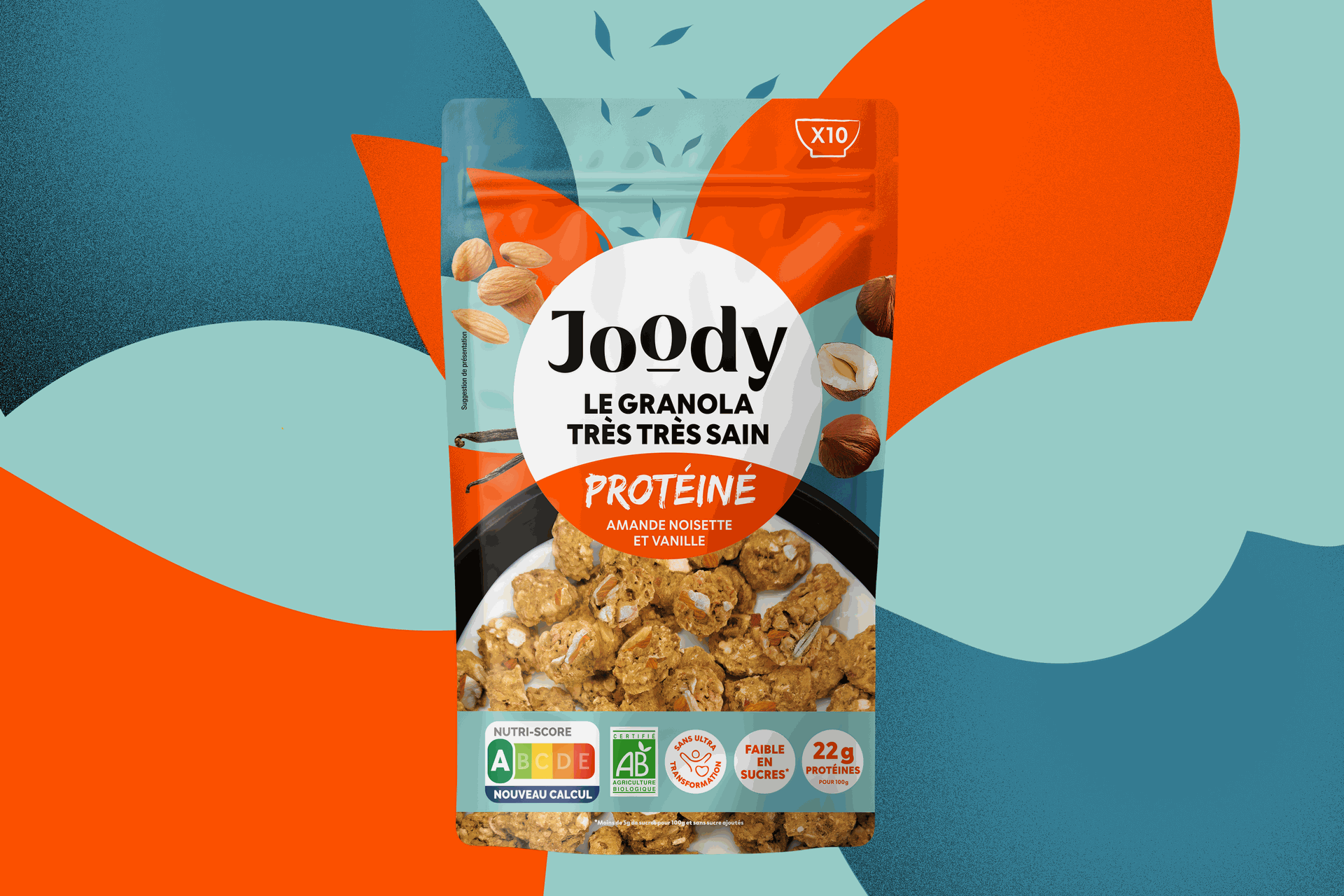 Le granola protéiné Amande Noisette Vanille Joody associe des ingrédients simples, sans procédé d’ultra-transformation, à une recette naturellement riche en protéines.